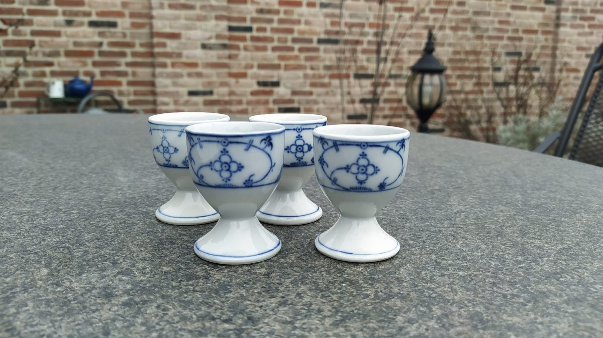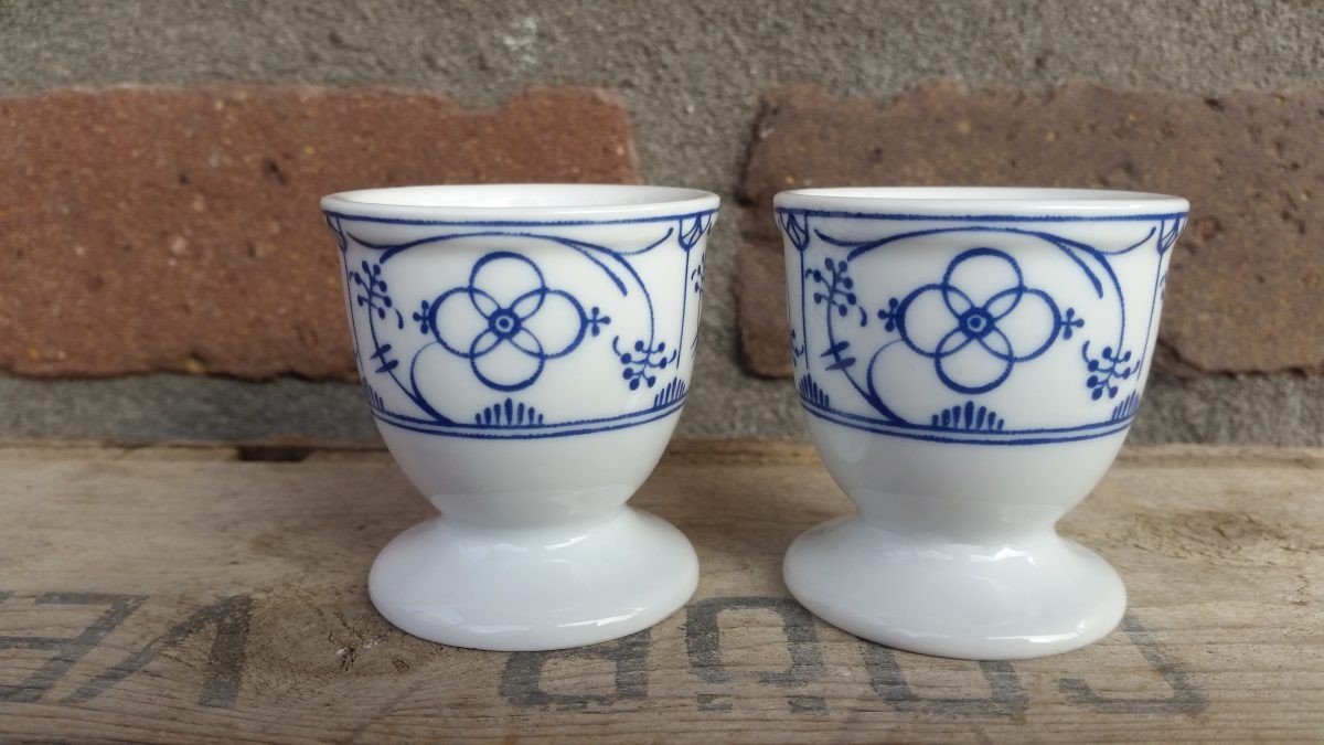 Antieke eierdopjes op voetje blauw saks