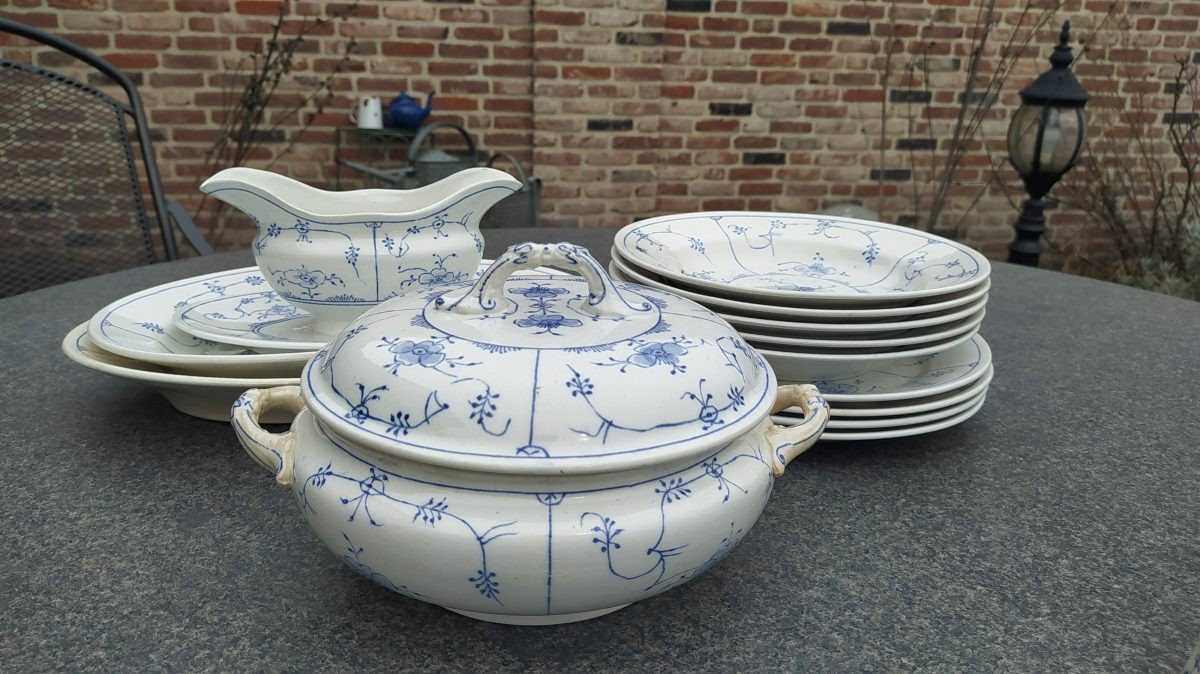 Blauw saks aardewerk diner set.