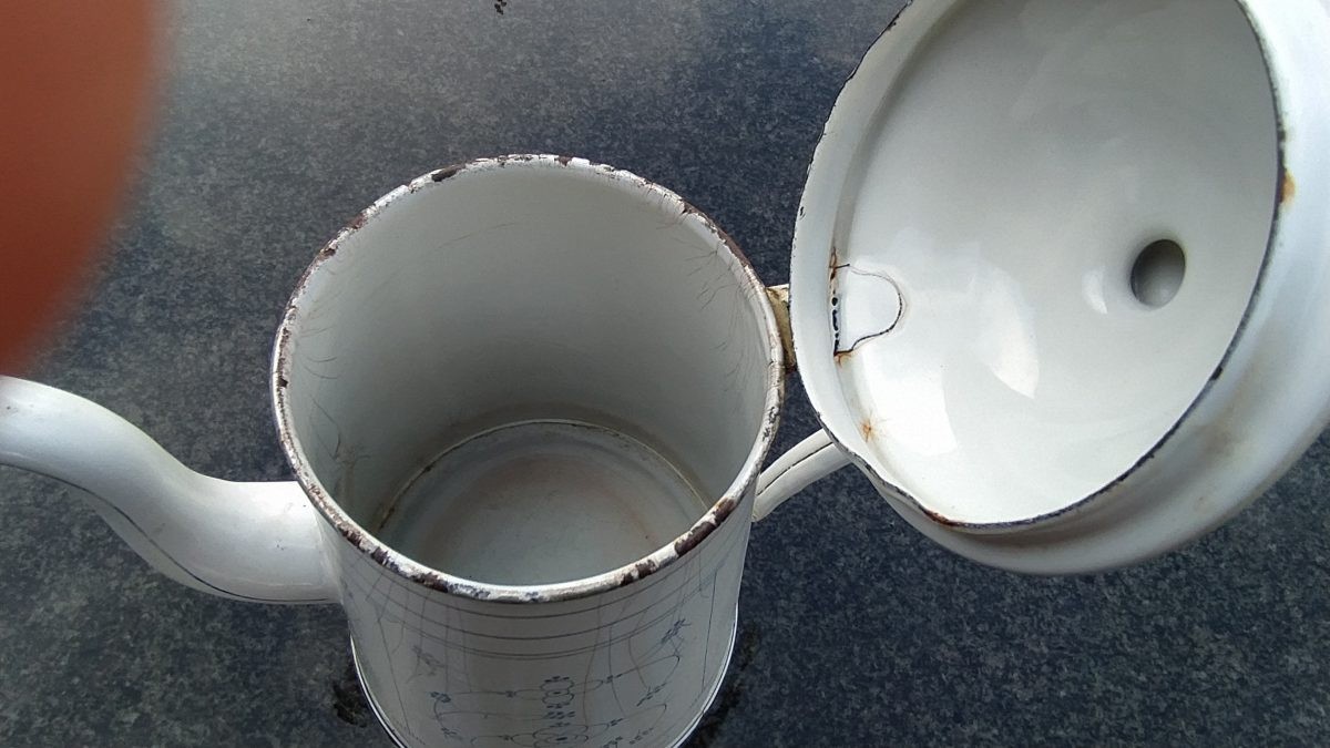 Grote emaille koffiekan