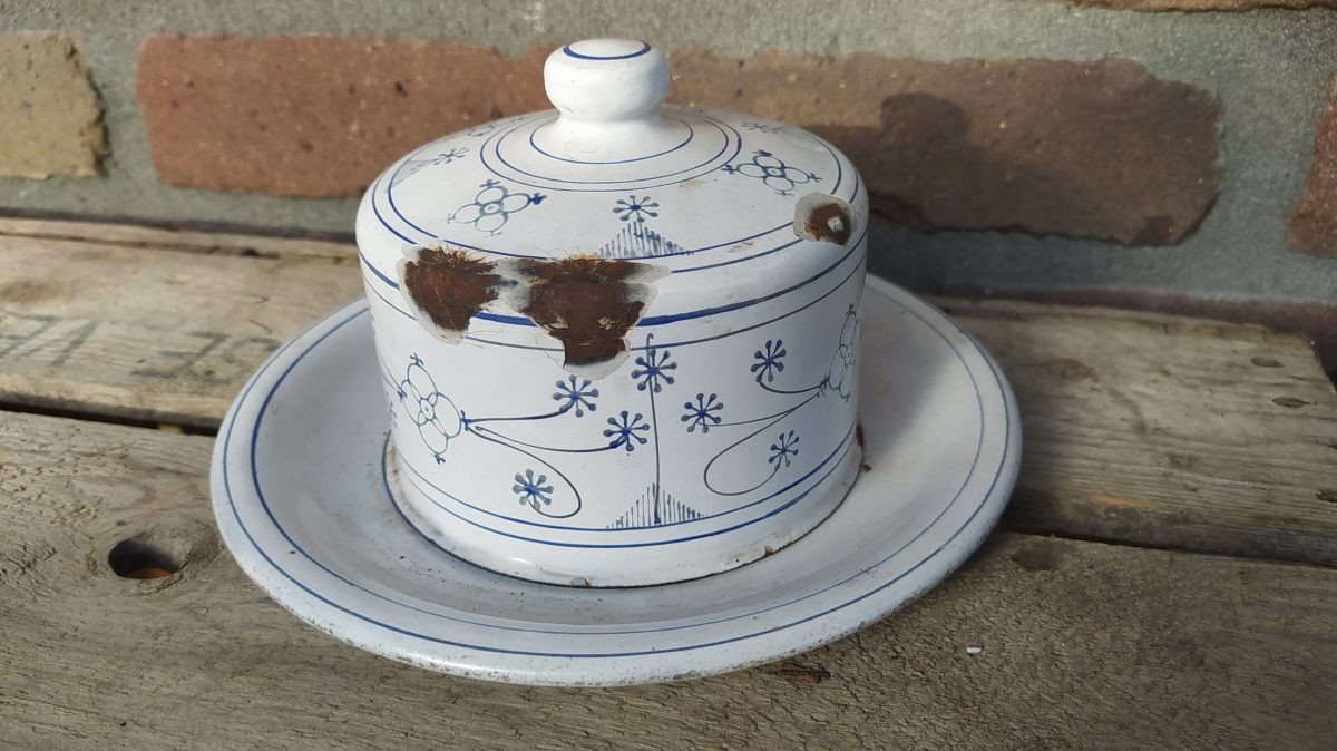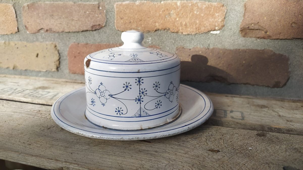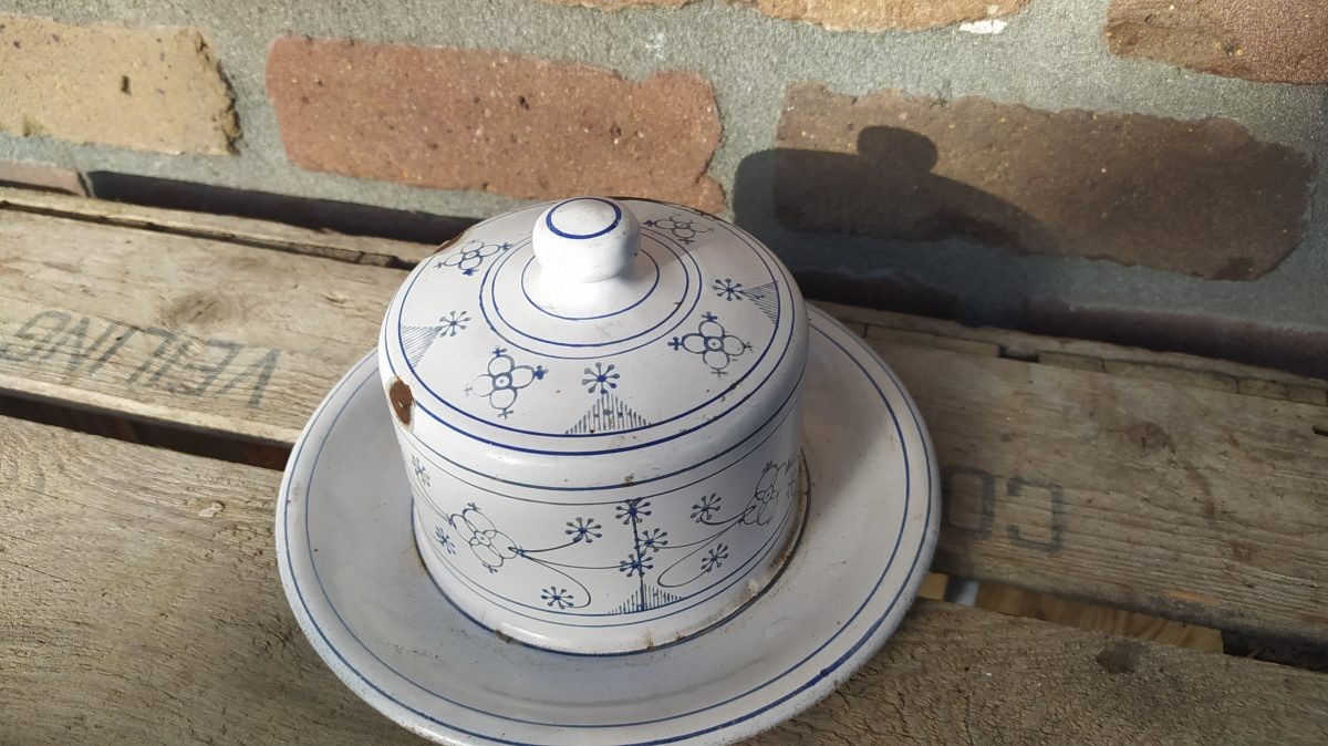 Groot model emaille botervloot blauw saks