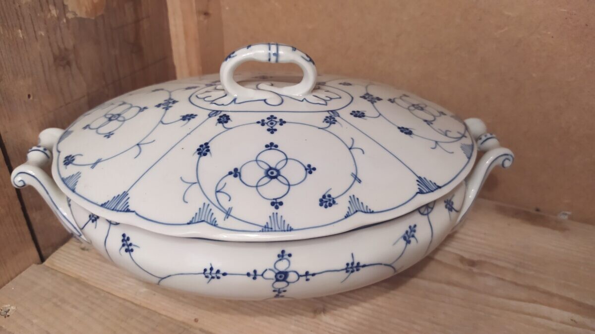 Home / Dekschalen / Prachtige antieke geschulpte dekschaal blauw saks